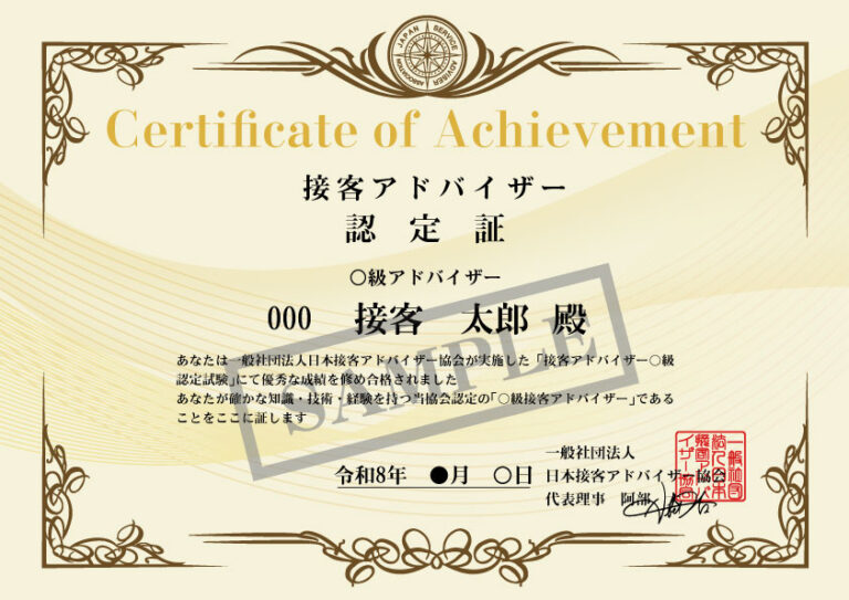 合格後、日本接客アドバイザー協会入会の手続きをいたします。